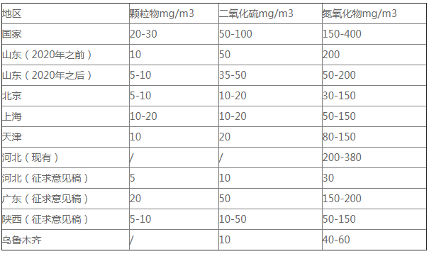 我國已出臺(tái)的部分地區(qū)燃?xì)忮仩t排放標(biāo)準(zhǔn)匯總